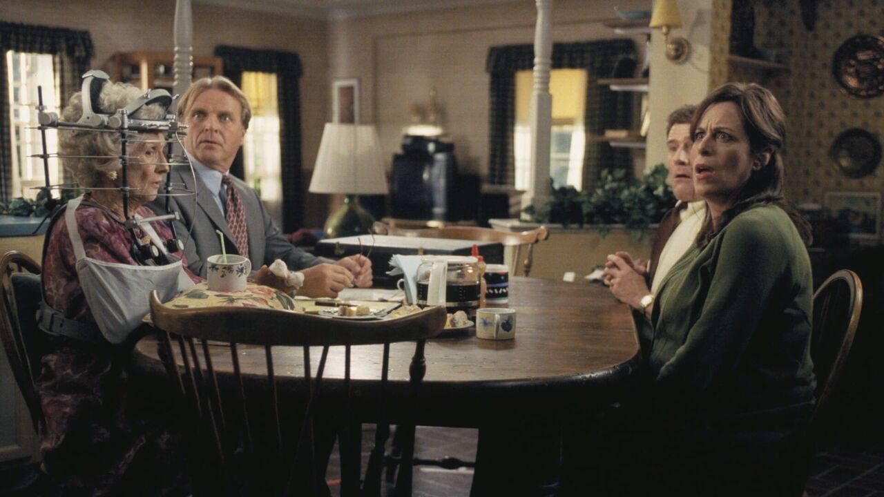 La venue de la grand-mère maternelle est un cauchemar. La vieille dame va jusqu'à leur faire un procès après avoir glissé sur une feuille morte.