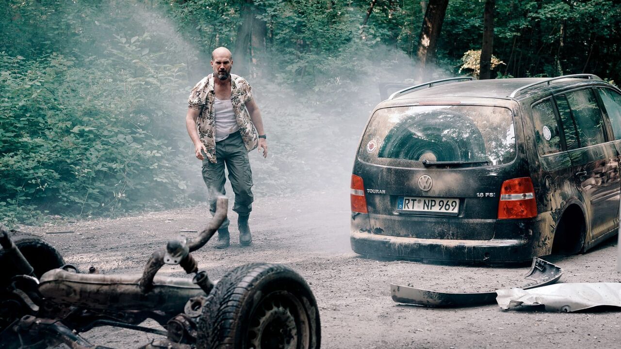 , copyright: © SWR/Hugo Lenhardt/Giganten Film / Flake, Kim und Philipp machen sich auf einen Roadtrip zum Bodensee - doch der Neonazi Norbert (Simon Böer) durchkreuzt ihre Pläne.