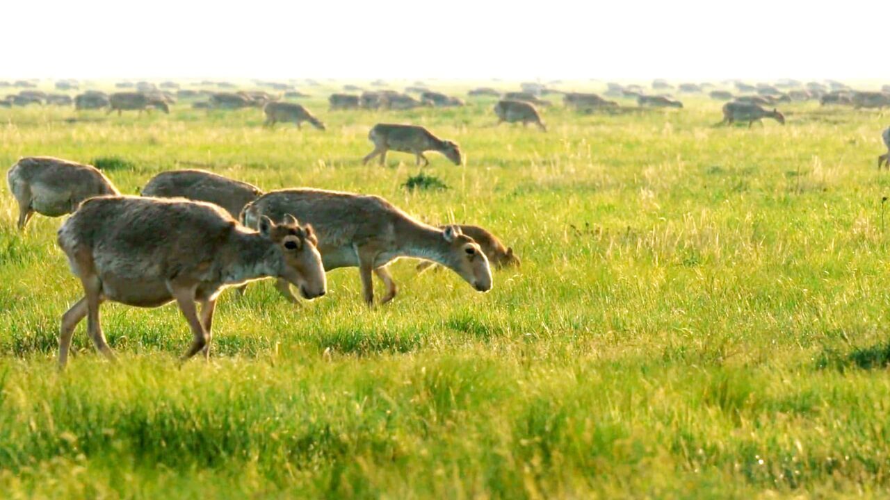 Des Saïgas aujourd’hui ayant retrouvé leur nombre après l’épidémie en Mongolie