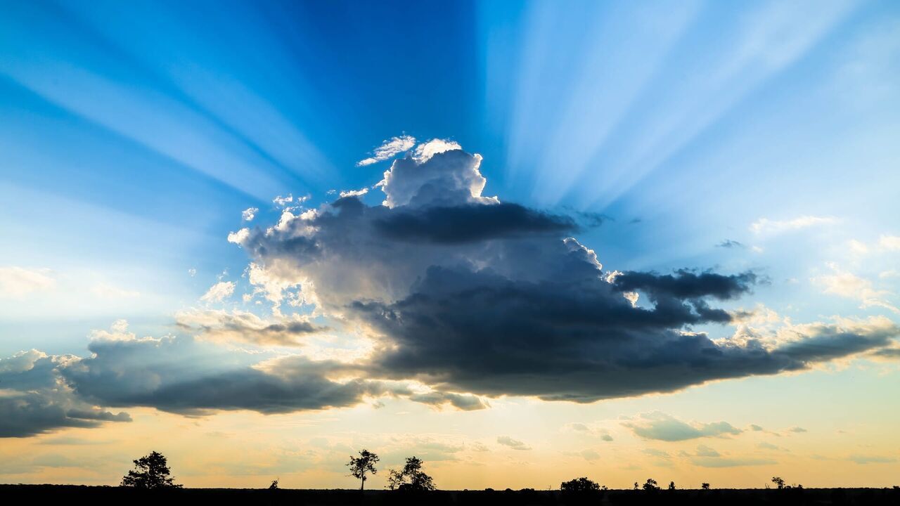 Des rayons de soleil émergent de derrière un nuage alors que le soleil commence à se coucher en Zambie.
