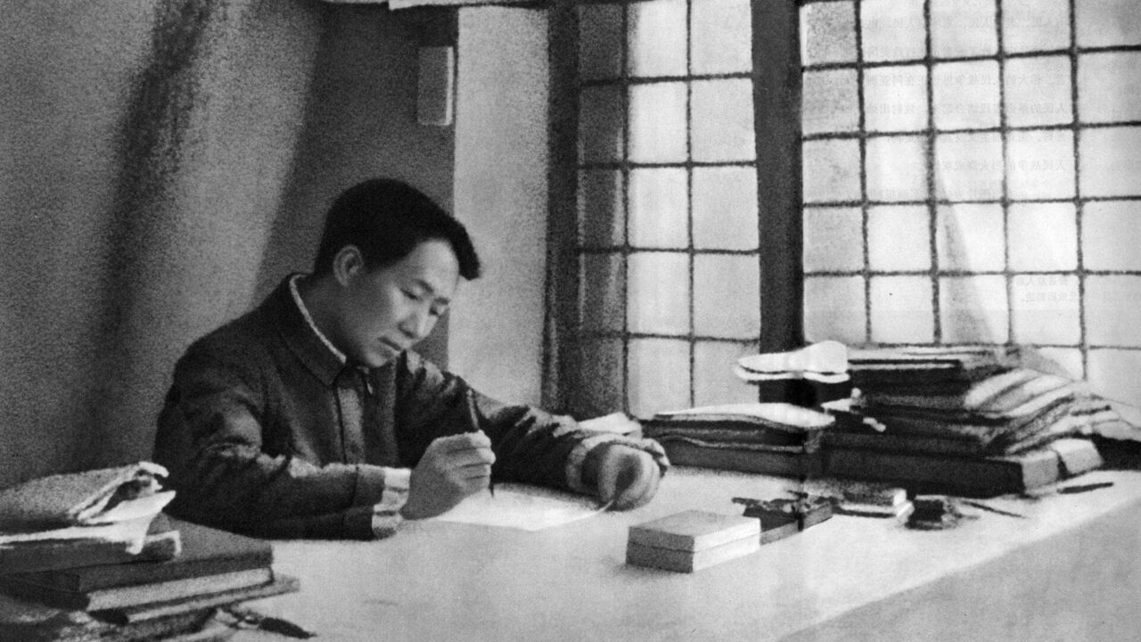 Mao Zedong - founding father of People s Republic of China Mao Zedong Mao Tse-tung 1893-1976 - Chinese communist revolutionary and founding father of the People s Republic of China. Seen here writing a book for his troops entitled Protracted Warfare. Date: 1938 PUBLICATIONxNOTxINxUKxFRAxBELxNEDxITAxDENxNORxSWExPOLxJPNxKORxTPE Copyright: CopyrightxcGeminix2023.xCredit:xGemini 11095863,copyright: IMAGO/Gemini / IMAGO/Gemini Collection / IMAGO/Gemini Collection / www.imago-images.de