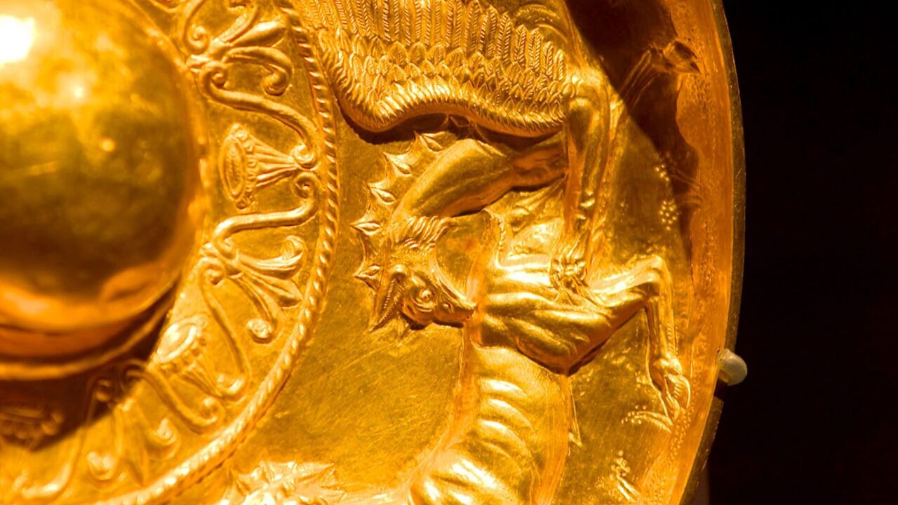 The nomadic horsemen of the Scythians used the gold bowl in their ritual ceremonies.,copyright: © Sami Karim / ZDF / © Sami Karim