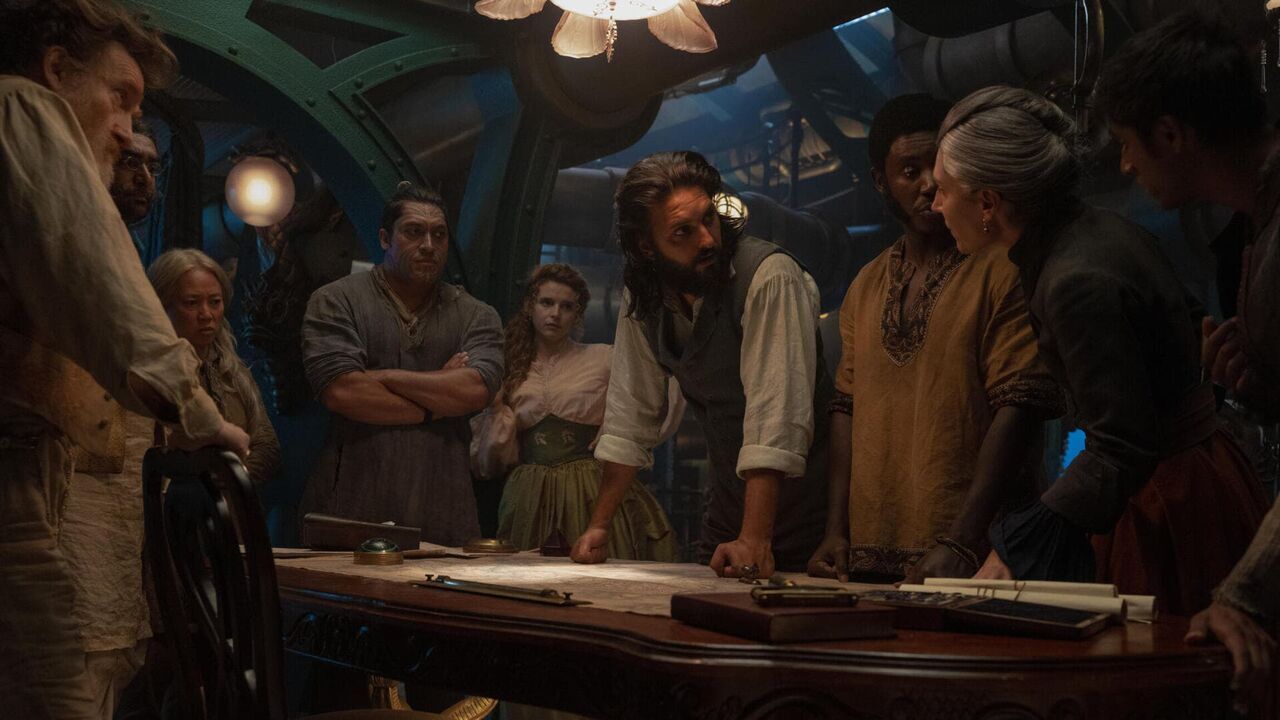 Nautilus/Series 1. (L to R) Thierry Fremont as Gustav, Chum Ehelepola as Jagadish, Ling Cooper Tang as Suyin, Tyrone Ngati as Kai, Georgia Flood as Humility, Shazad Latif as Nemo, Pacharo Mzembe as Boniface, Celine Menville as Loti, Ashan Kumar as Ranbir in Nautilus. Cr. Vince Valitutti/Disney+ © 2022.,copyright: © 2024 Disney Enterprises, Inc. All rights reserved. / _02A5579.CR3