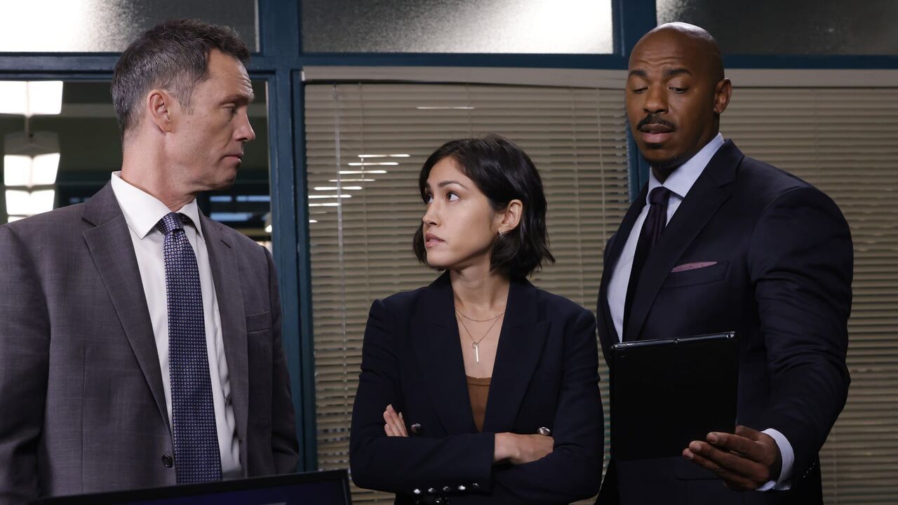 Jeffrey Donovan as Det. Frank Cosgrove, Connie Shi as Violet Yee, Mehcad Brooks as Det. Jalen Shaw,copyright: NBC / Will Hart/NBC / Episodic / 2022 NBCUniversal Media, LLC
