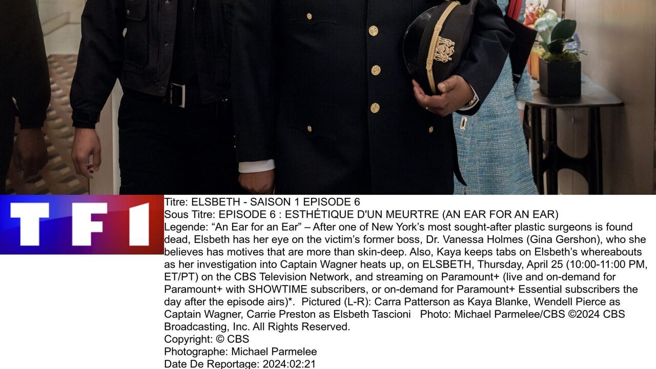 Carra Patterson as Kaya Blanke, Wendell Pierce as Captain Wagner, Carrie Preston as Elsbeth Tascioni,copyright: Michael Parmelee / CBS / CBS ENTERTAINMENT / ©2024 CBS Broadcasting Inc. All Rights Reserved.