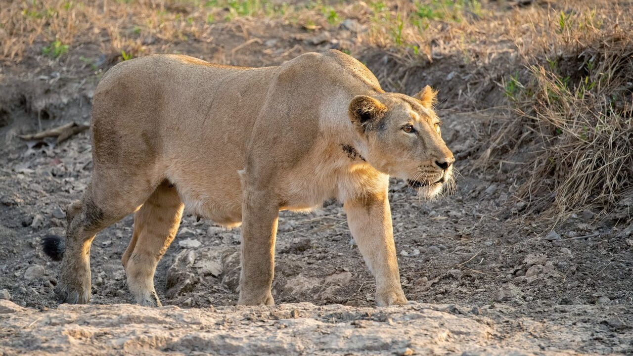 Découverte des moeurs d'une lionne asiatique affectueusement baptisée Noor, qui vit dans la forêt de Gir, dans l'Etat du Gujarat, au Nord de l'Inde.