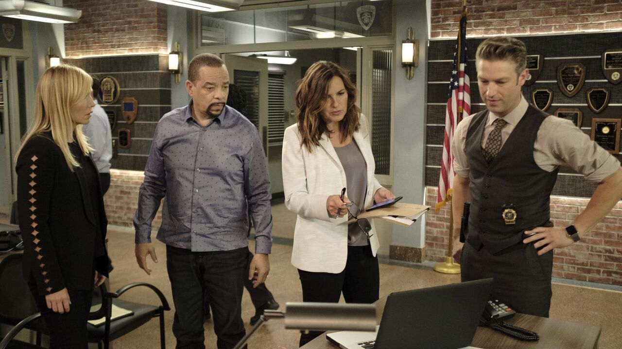 LAW & ORDER: SPECIAL VICTIMS UNIT -- "Contrapasso" Episode 1903 -- Pictured: (l-r) Kelli Giddish as Detective Amanda Rollins, Ice T as Detective Odafin "Fin" Tutuola, Mariska Hargitay as Lieutenant Olivia Benson, Peter Scanavino as Dominick "Sonny" Carisi -- (Photo by Christopher Saunders/NBC),copyright: © NBC / Christopher Saunders