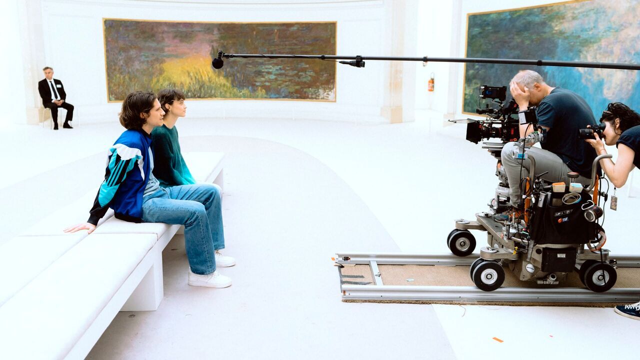Photo plateau, tournage du film ''La venue de l'avenir'' de Cédric Klapisch: Abraham Wapler, Claire Pommet (Pomme),copyright: Ce Qui Me Meut / Photo numérique / © 2025 Ce Qui Me Meut