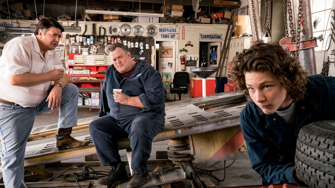 Lance Barber, Billy Gardell, Montana Jordan"An 8-Bit Princess and a Flat Tire Genius"- Pictured: George Sr. (Lance Barber), Herschel (Billy Gardell) and Georgie (Montana Jordan). A video game takes over Sheldon and Meemaw's life. Also, George Sr. is jealous when Georgie bonds with Herschel (Billy Gardell) at the auto shop, on YOUNG SHELDON, Thursday, Nov. 8 (8:31-9:01 PM, ET/PT) on the CBS Television Network. Photo: Michael Desmond/Warner Bros. Entertainment Inc. © 2018 WBEI. All rights reserved.,copyright: © Michael Desmond / WARNER BROS. / CBS ENTERTAINMENT / © 2018 WBEI. All rights reserved.