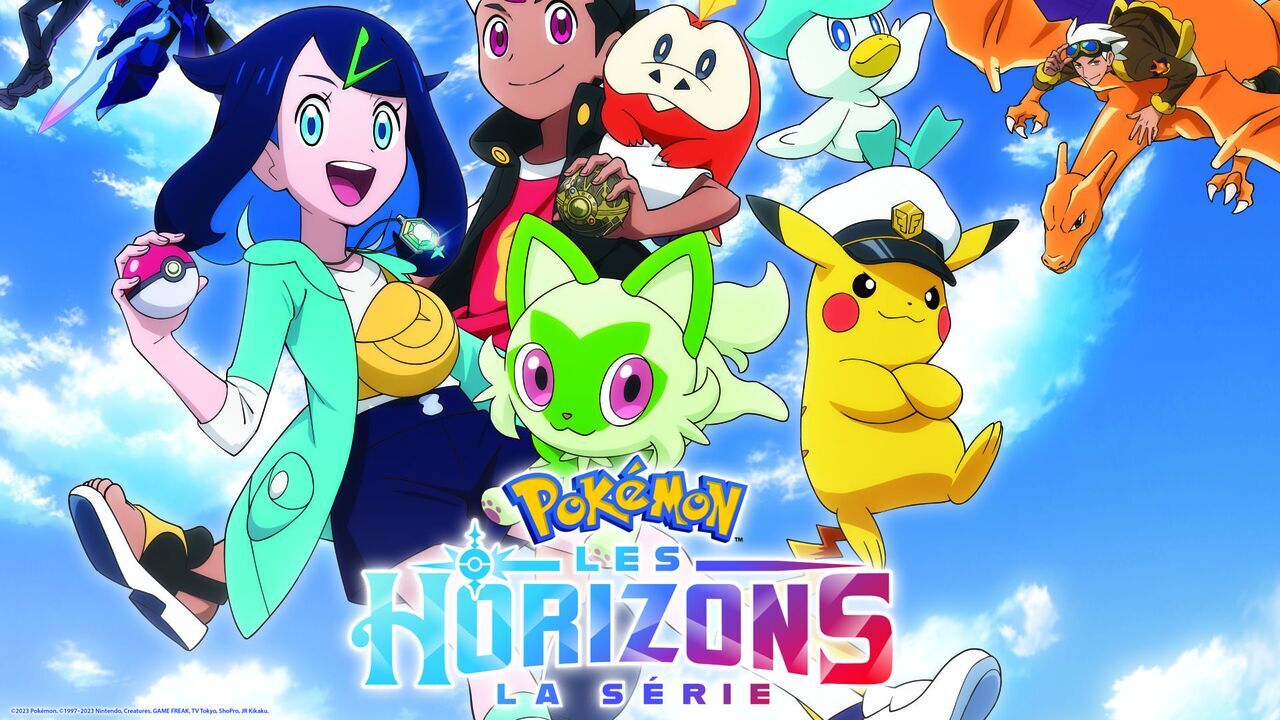 Pokémon : Les Horizons, title card,copyright: ©2023 Pokémon. ©1997-2023 Nintendo, Creatures, GAME FREAK, TV Tokyo, ShoPro, JR Kikaku. TM