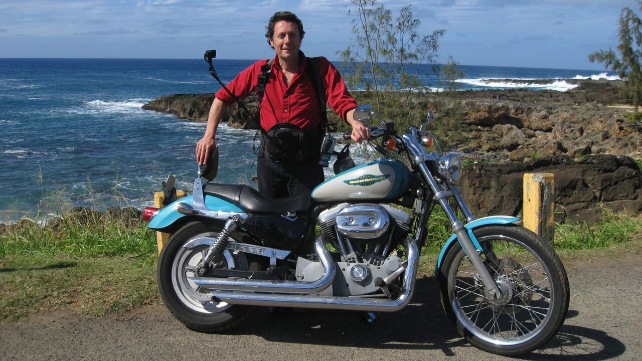 Antoine de Maximy parcourt Hawaii en Harley-Davidson.