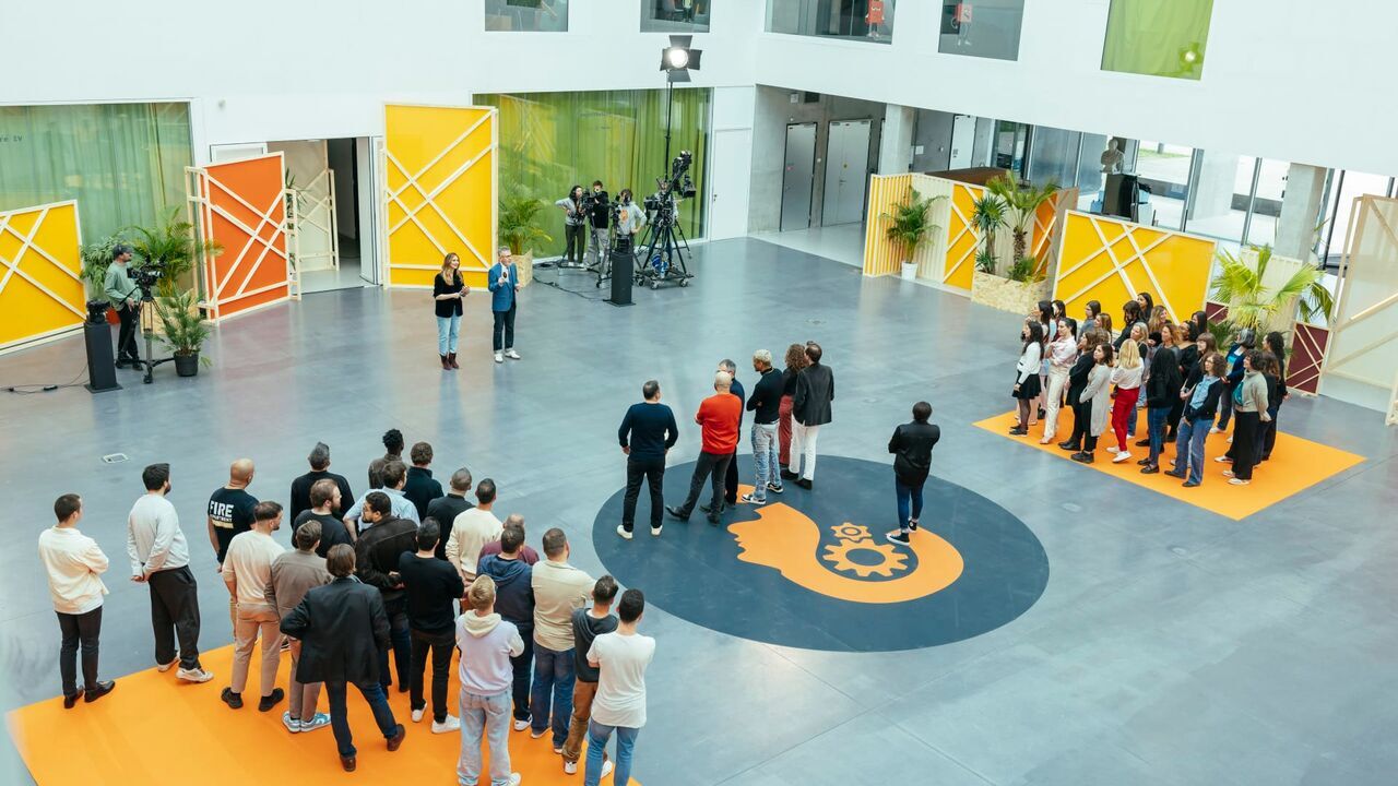 Sommes-nous tous sexistes. Tournage au campus de Centrale-Supelec. MARIE PORTOLANO. JAMY GOURMAUD.,copyright: © Nathalie Guyon - FTV / © Nathalie GUYON - France télévisions