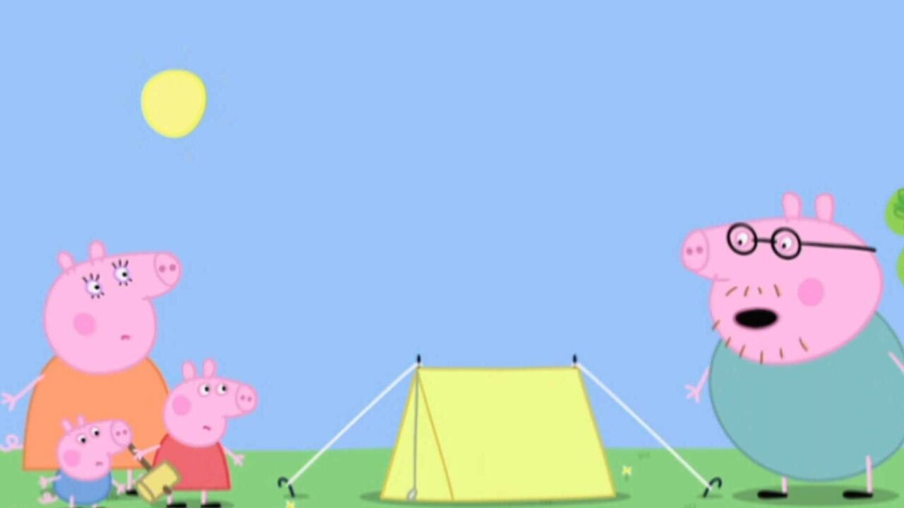 La famille de Peppa part faire du camping quelques jours. Leur tente n'est pas vraiment spacieuse. Après avoir vainement tenté de s'endormir à côté des siens, papa Cochon choisit finalement de s'installer à la belle étoile...