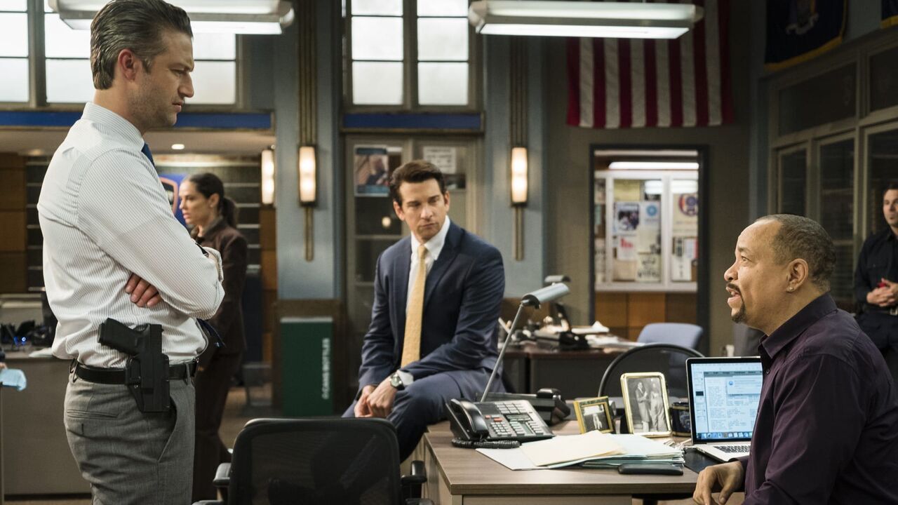 Peter Scanavino as Dominick "Sonny" Carisi, Andy Karl as Sgt. Mike Dodds, Ice-T as Detective Odafin "Fin" Tutuola,copyright: NBC / Michael Parmalee/NBC / Episodic / 2015 NBCUniversal Media, LLC
