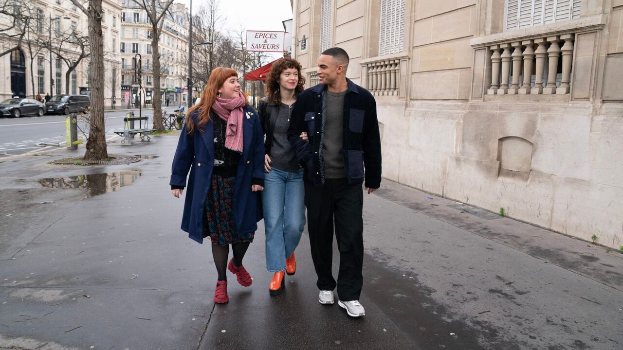 Liv Henneguier (Louise), Clara Bretheau (Charlie) et Theo Christine (Nelson) dans "Quelqu'un devrait interdire les dimanches après-midi" d'Isabel Coixet, épisode 8,copyright: © Stéphanie Branchu / © Stéphanie Branchu