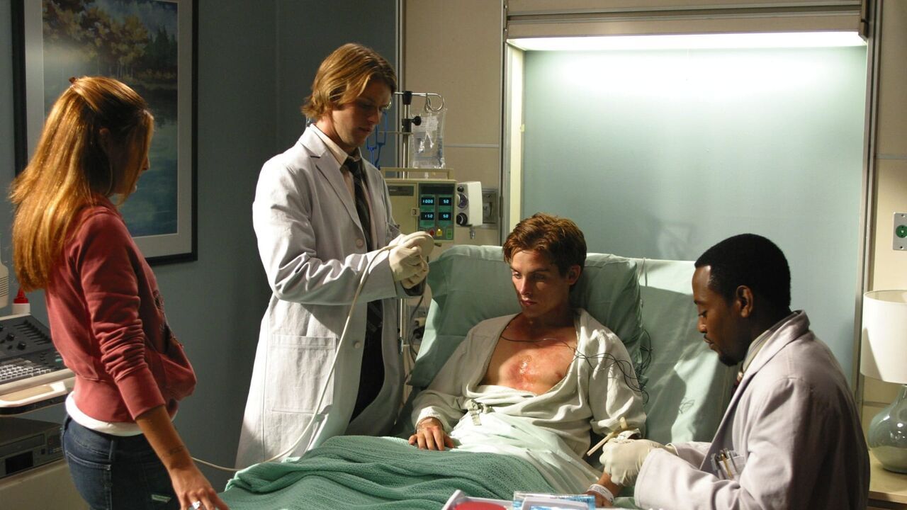 HOUSE -- NBC Universal Television -- Occam's Razor -- Pictured: (l-r) Alexis Thorpe as Mindy Gross, Jesse Spencer as Dr. Robert Chase, Kevin Zegers as Brandon Merrell, Omar Epps as Dr. Eric Foreman -- NBC Universal photo: Robert Voets,copyright: / NBC UNIVERSAL