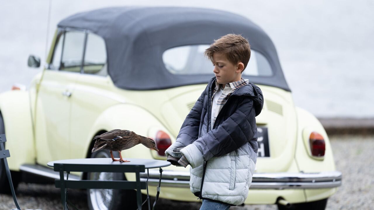 Beyond Paradise Series 2 - Episode 6 - Ryan (ISAAC VINCENT-NORGATE) with Selwyn the duck,copyright: BBC / Red Planet Pictures / BBC / Red Planet Pictures