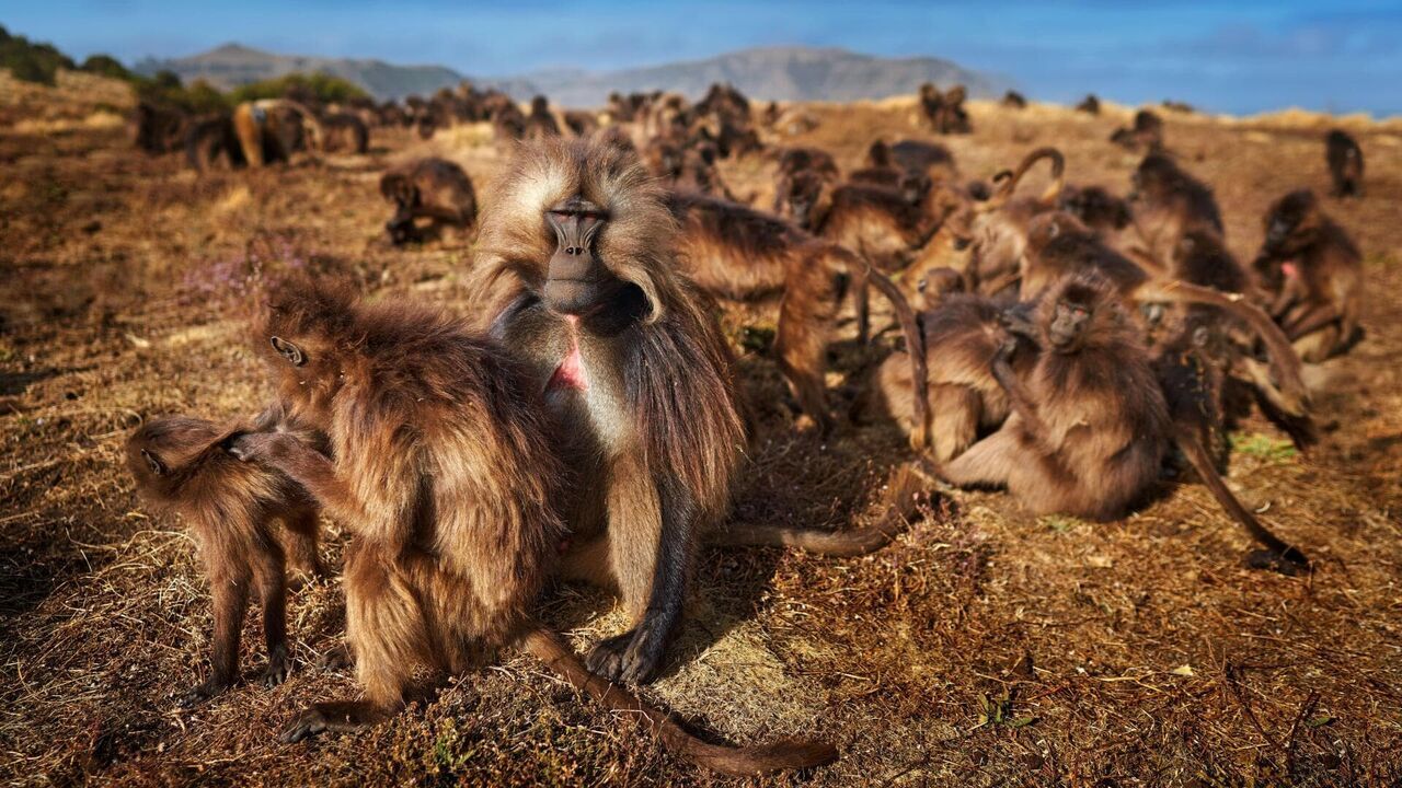 A 3500 mètres d'altitude, sur les hauts plateaux éthiopiens, agriculteurs et geladas, des singes-lions, se partagent une terre fertile et arrosée. Longtemps, les relations furent au désavantage des geladas, chassés et repoussés toujours plus haut dans la montagne. Mais depuis la création du Parc national du Simien, les singes sont protégés et l'arrivée du tourisme n'a fait que renforcer leur statut.