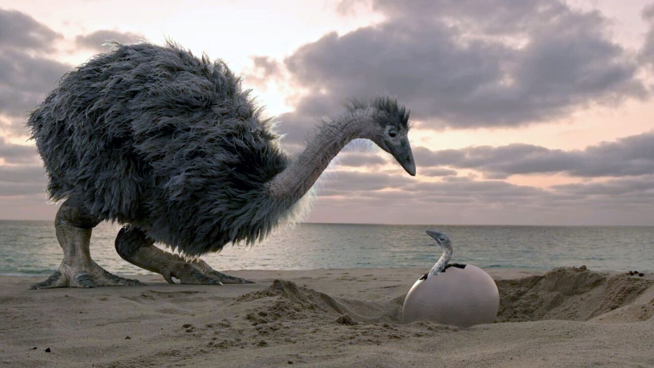 An elephant bird takes care of its young.,copyright: © Saint Thomas Productions / © Saint Thomas Productions