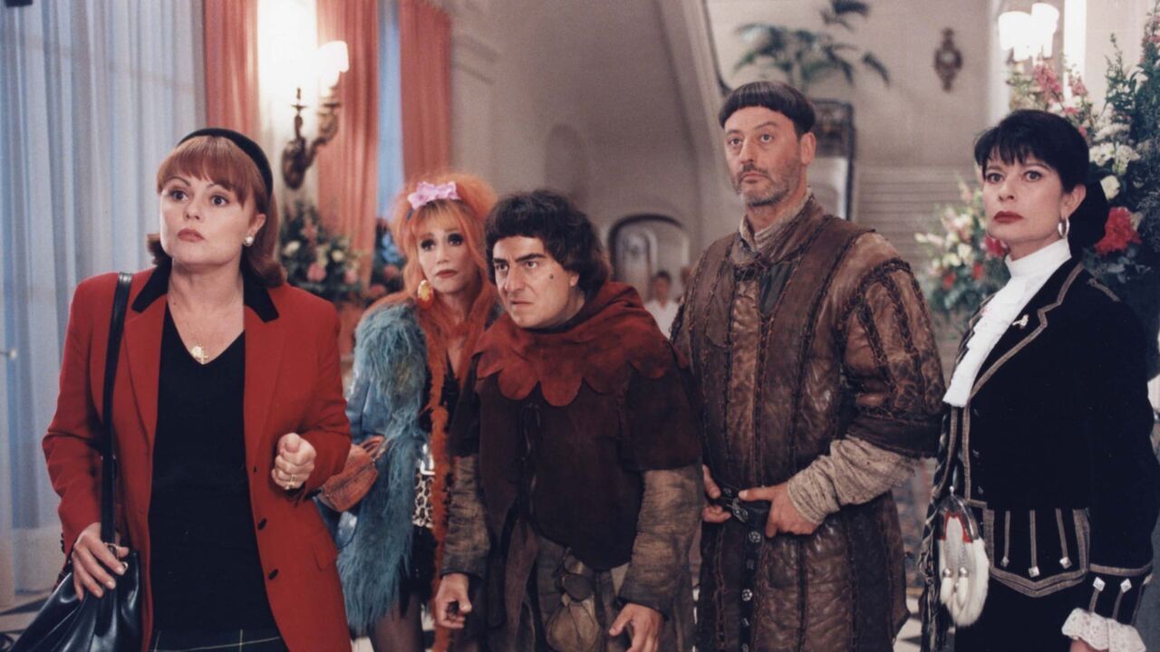 Muriel Robin (Béatrice), Marie-Anne Chazel (Ginette), Christian Clavier (Jacquouille), Jean Reno (le comte Godefroy de Montmirail) et Claire Nadeau (Claire),copyright: TMC